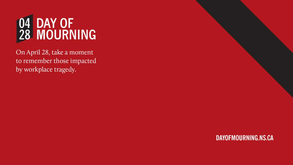 - Join us in paying tribute to those who have died or died or been seriously injured because of their work.- attend a Day of Mourning ceremony on April 28 or learn more at dayofmourning.ns.ca